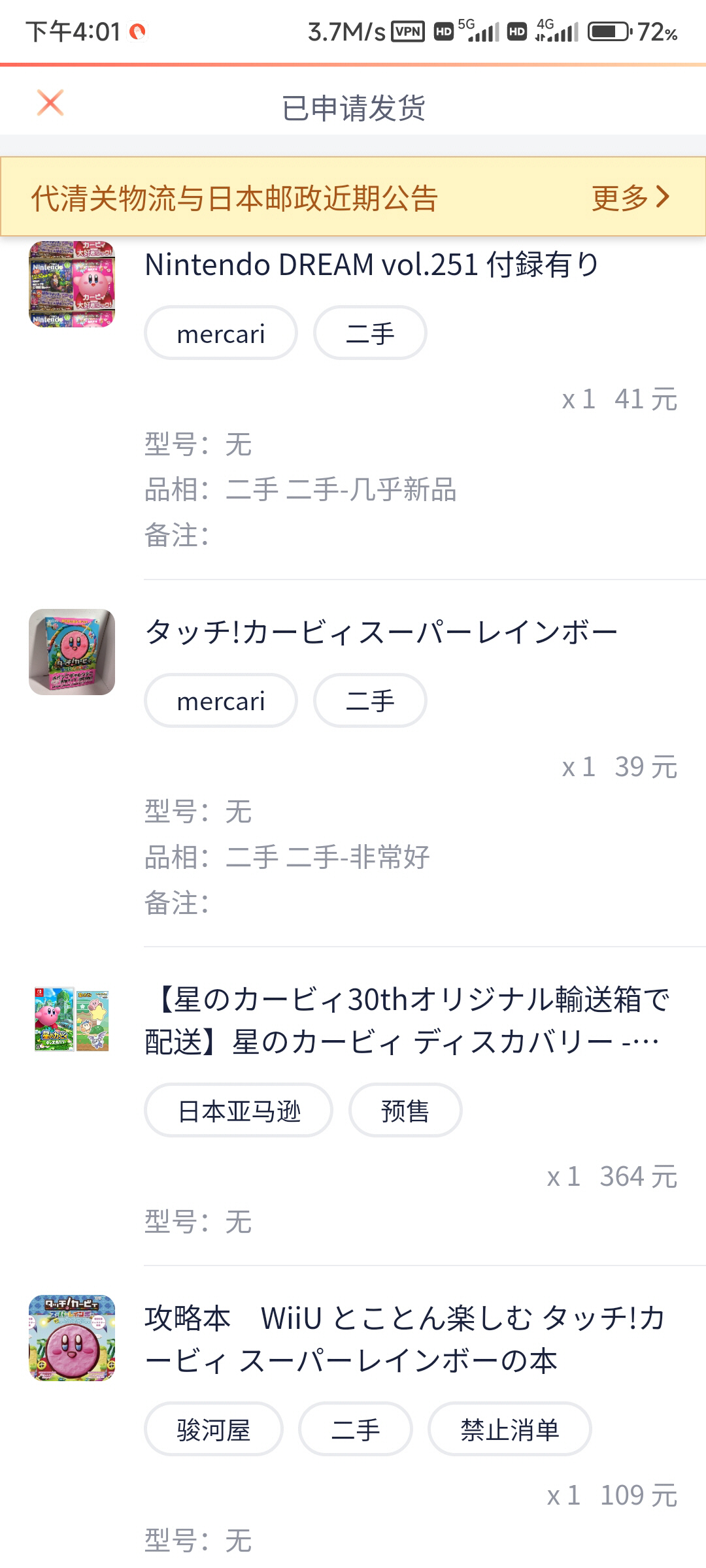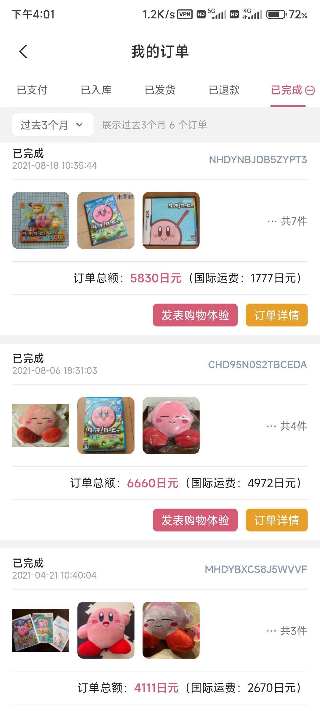 以上是我自己的部分海淘记录,只买卡比相关的东西,暂时从未被税过!不包括在淘宝、闲鱼等地方入手的。