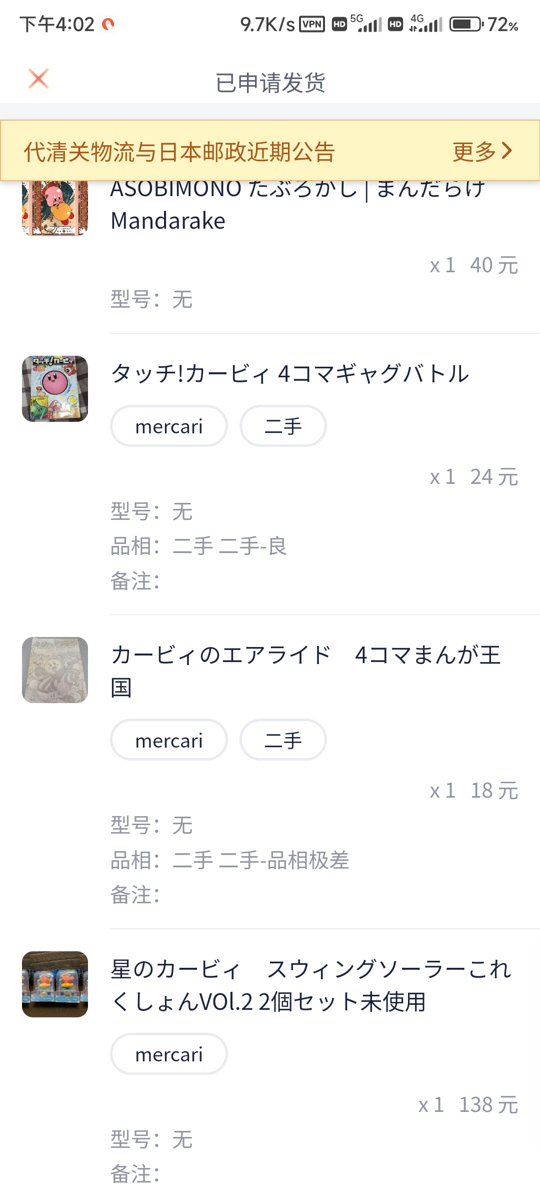 当时我还不知道尾货这种概念的,所以为了想买到真正正版的卡比玩具,就去日本海淘上买卡比的谷子。