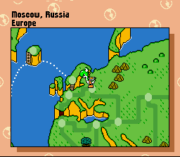 | 第三项是耀西的位置(GLOBULATOR,如图三),将耀西移动到路易吉的所在位置时,路易吉就会骑上耀西,如此才能进蓝色水管回到城堡.第四项是城市地图(CITY