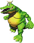 鲁尔王的弟弟,鳄鱼里唯一心地善良的,因为反抗鲁尔王而被关。听到Donkey答应救他出来就高兴地在牢里蹦跳,虽然体型很大,个性却像小孩一样单纯。在游戏里要靠他帮你开路。 |